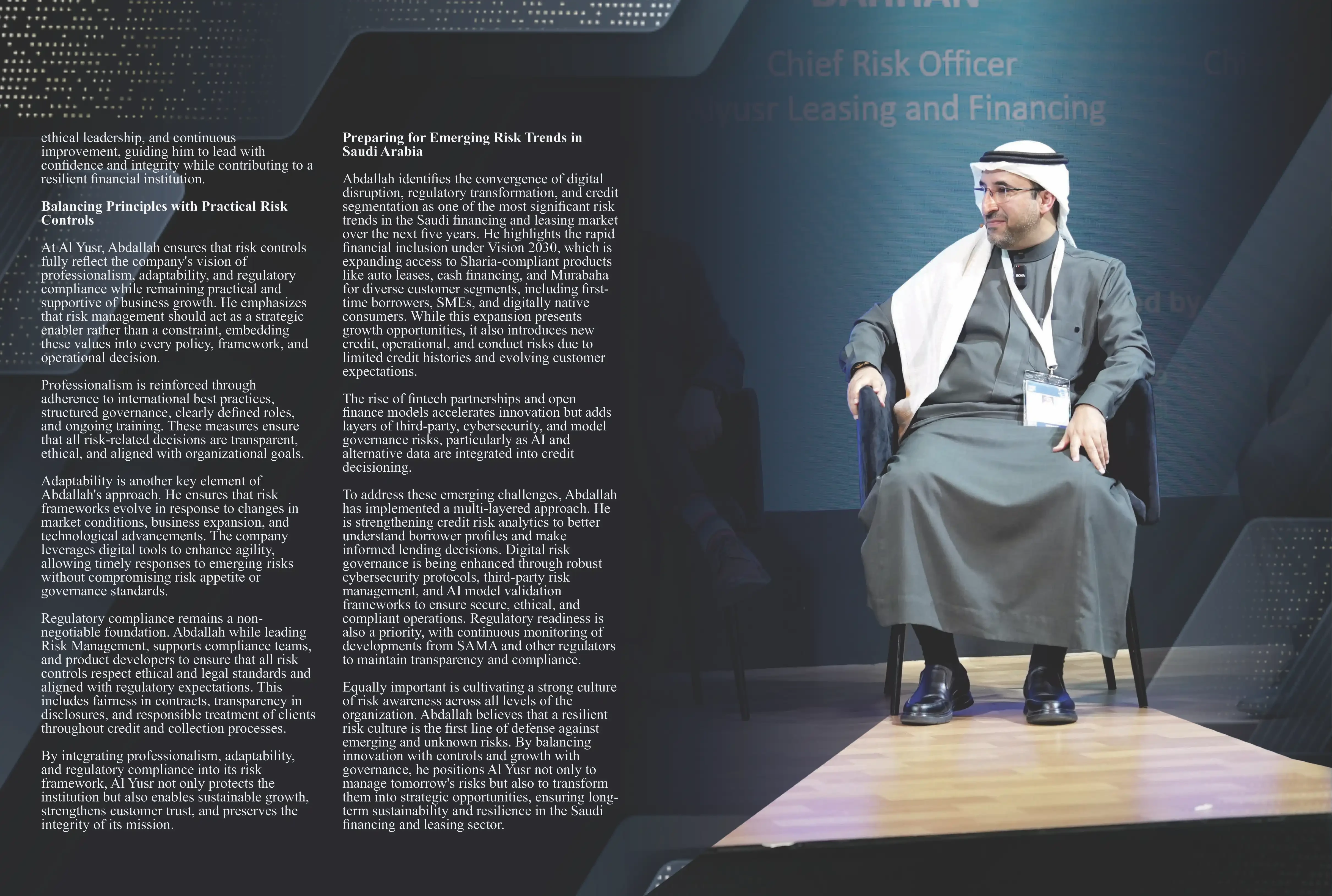 He often emphasizes a guiding principle in his work, that operational risk should not be viewed as a limitation on innovation, but as a catalyst for creating a safer, smarter, and more sustainable organization. By combining technology with insight and a culture of vigilance, Abdallah is positioning Al Yusr to manage both current and emerging risks with confidence and foresight.