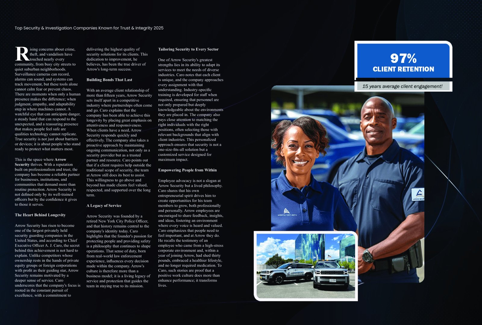 Arrow Security has risen to become one of the largest privately held security guarding companies in the United States, and according to Chief Executive Officer A. J. Caro, the secret behind this achievement is not hard to explain. Unlike competitors whose ownership rests in the hands of private equity groups or foreign corporations with profit as their guiding star, Arrow Security remains motivated by a deeper sense of service. Caro underscores that the company’s focus is rooted in the constant pursuit of excellence, with a commitment to delivering the highest quality of security solutions for its clients. This dedication to improvement, he believes, has been the true driver of Arrow’s long-term success.