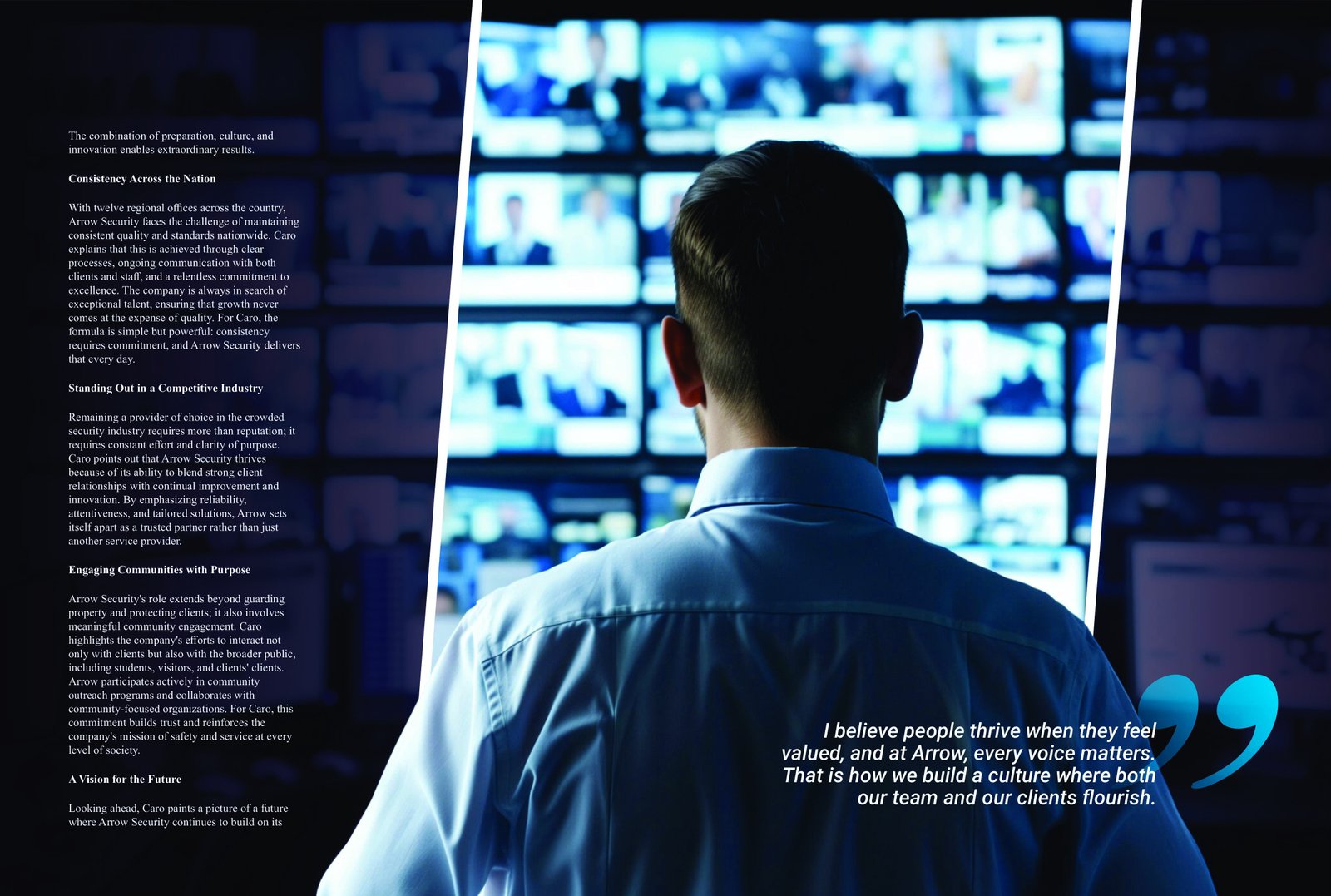 Remaining a provider of choice in the crowded security industry requires more than reputation; it requires constant effort and clarity of purpose. Caro points out that Arrow Security thrives because of its ability to blend strong client relationships with continual improvement and innovation. By emphasizing reliability, attentiveness, and tailored solutions, Arrow sets itself apart as a trusted partner rather than just another service provider.