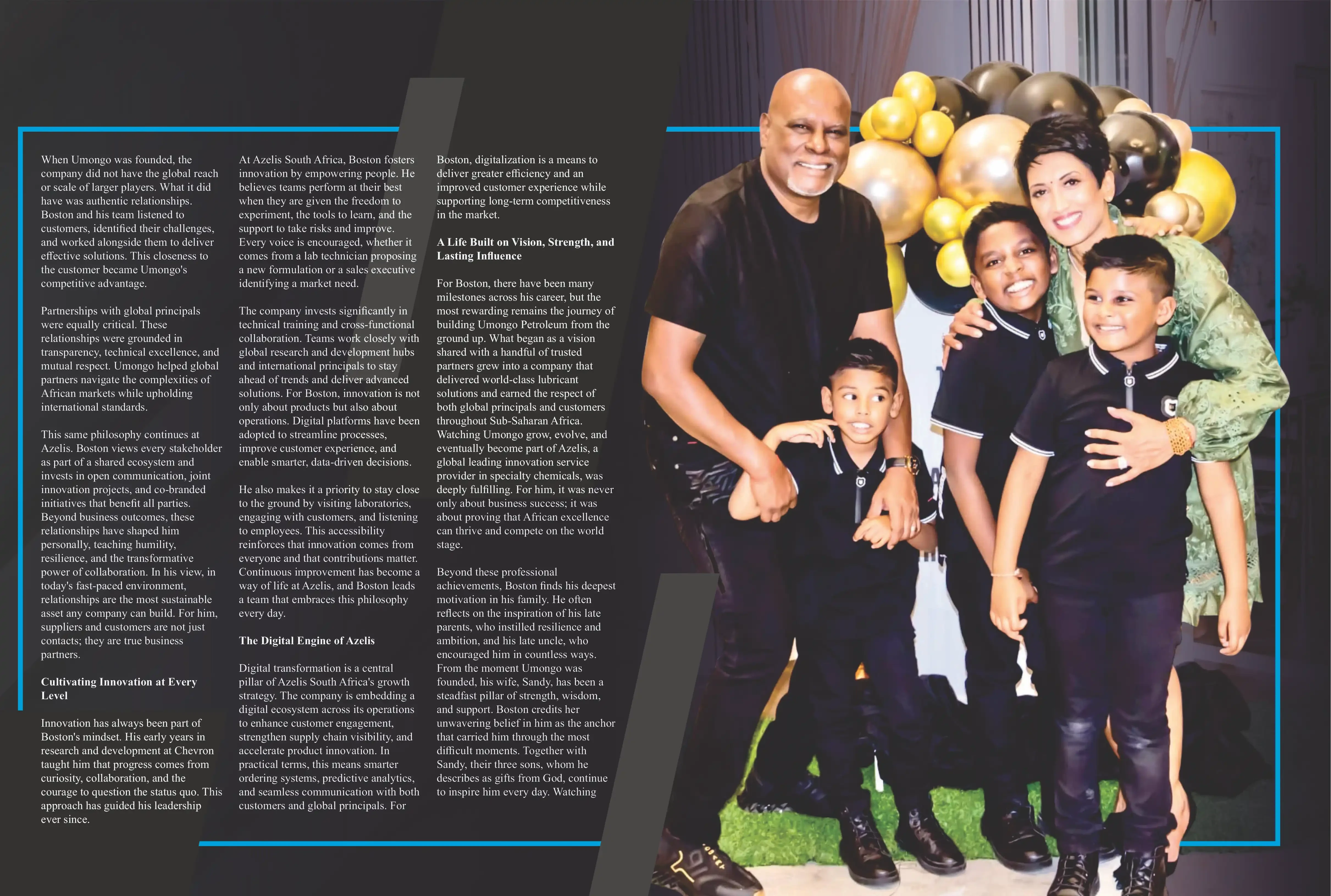 people, a belief that Boston has carried into his leadership at Azelis. Today,
